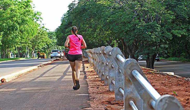 Nesta semana, as equipes da empreiteira responsável iniciaram a instalação do guarda-corpo que vai separar a calçada do estacionamento, na Avenida do Poeta, onde existe um desnível considerável. A estrutura começou a ser colocada entre a Governadoria e a Secretaria de Estado de Educação (SED). Segundo a Agência Estadual de Gestão e Empreendimentos (Agesul), quando a pista de caminhada foi projetada no mesmo nível que o asfalto, o talude ficaria muito íngreme. Por esse motivo foi instalado um muro de eucalipto para a divisão de níveis, ficando uma diferença grande de nível. Para evitar que as pessoas pudessem cair, foi colocado o guarda-corpo paralelo ao muro de eucalipto.
