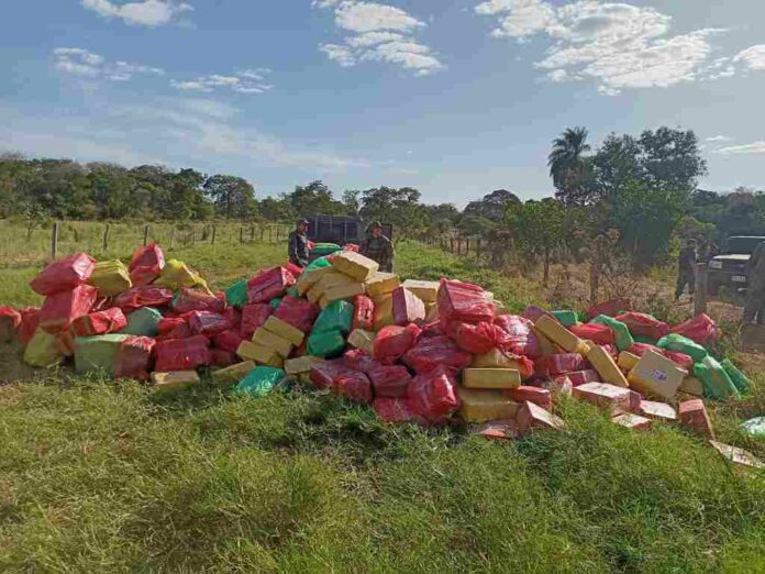 Durante mais uma investida da Operação Basalto, agentes da Senad (Secretaria Nacional Anidrogas do Paraguai) descobriram uma grande quantidade de maconha pronta para comercialização nesta terça-feira (26). A droga estava enterrada em uma fazenda localizada na Colônia Estrella, em Pedro Juan Caballero.