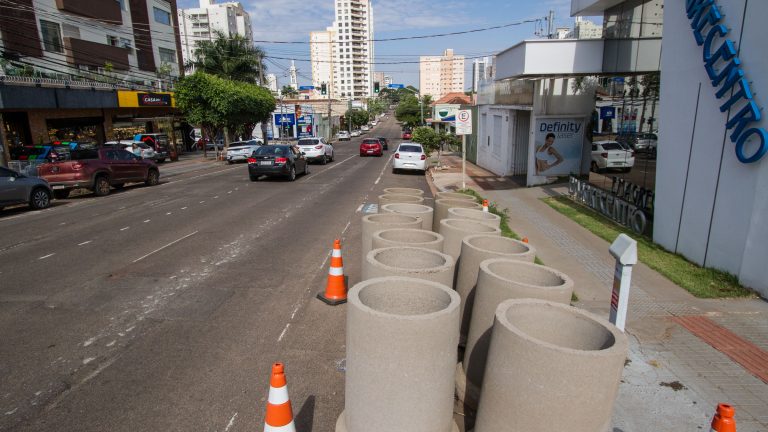 Está pronto o trecho de 370 metros na Rua Padre João Crippa, entre Afonso Pena e Fernando Correa da Costa. Está em andamento também a implantação da drenagem na Travessa Mário Pinto Peixoto e na Rua Santos Dumont, que acabará com pontos de alagamento na Rua 13 de Maio, perto do Centro de Especialidades Médicas.A tubulação já foi colocada dentro da esplanada ferroviária.